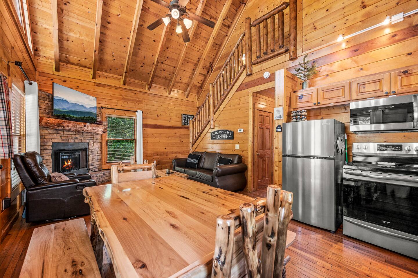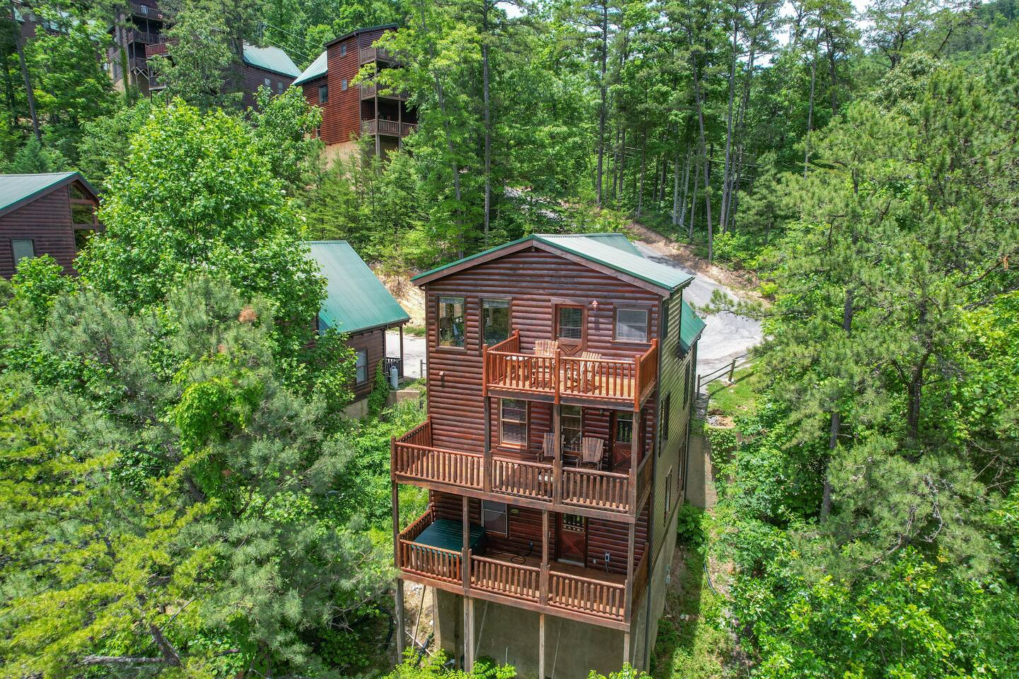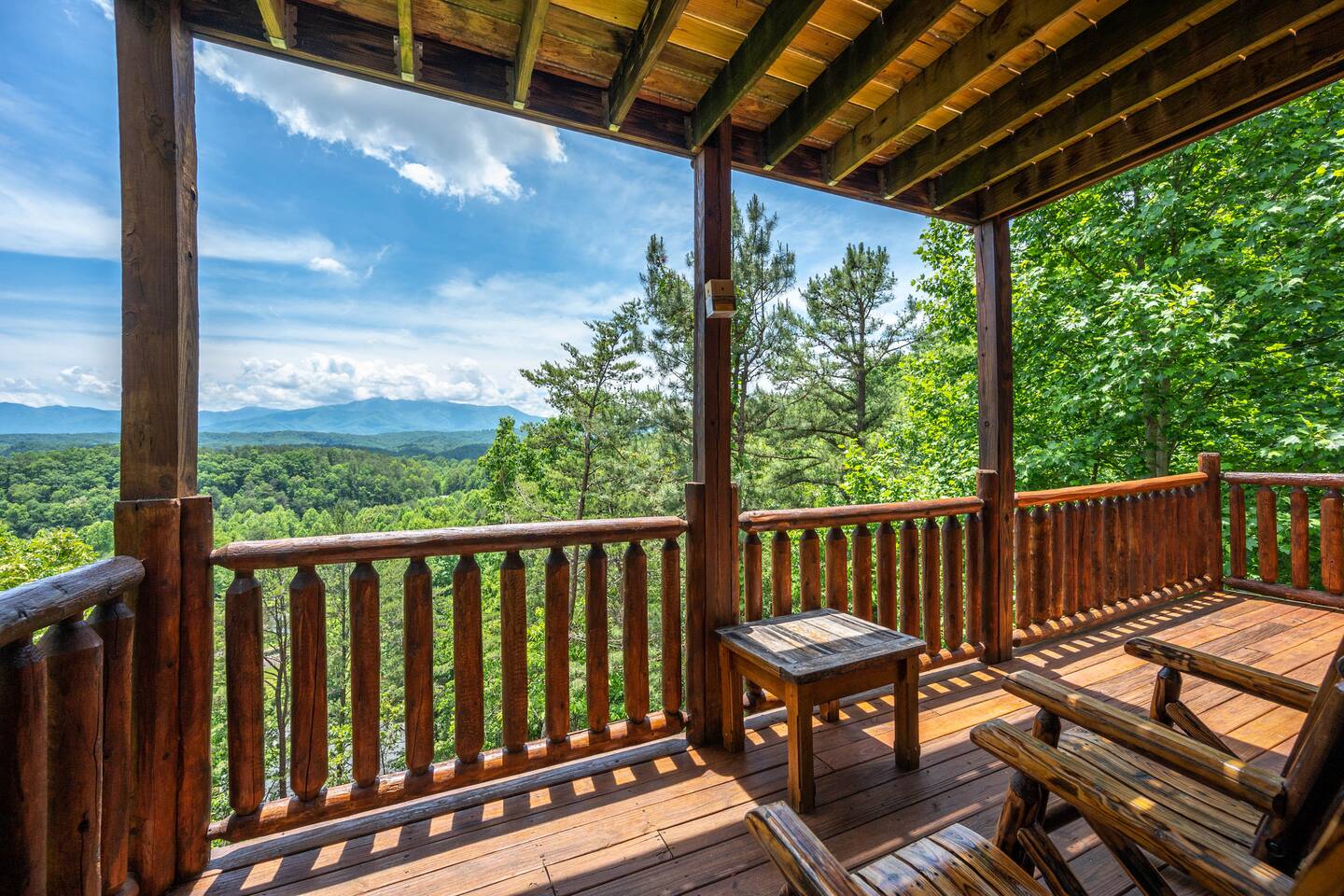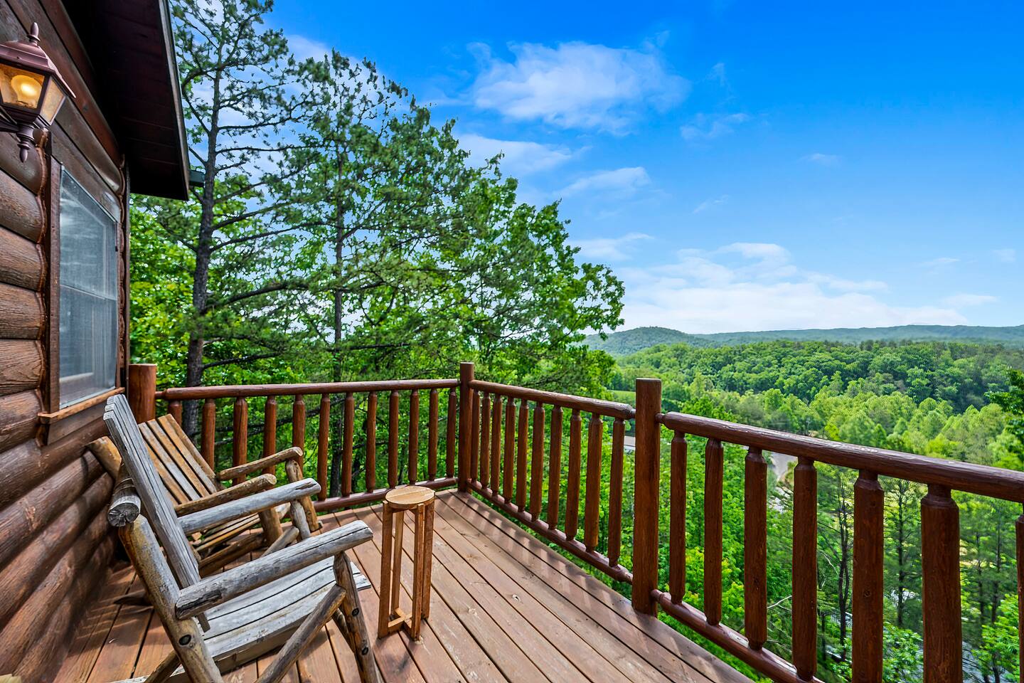 - 4-bedroom cabin with breathtaking views! - Sleeps 12 guests - Hot Tub - 10 minutes from all the action on the Parkway - Air Hockey table, Arcade Game, Smart TV's - High Speed WiFi - 3 Decks with amazing views - 3 King Beds, 1 Queen Bed, and 3 Sleeper Sofas - Fully equipped kitchen Prime location, yet nestled in the heart of nature, this cabin is the perfect retreat for families and groups looking for a peaceful and relaxing getaway. You and your family or group of 12 guests are going to love this cabin as it can accommodate a nice social gathering yet ensure the privacy you need while on vacation. Book now to experience the Smoky Mountains and all it has to offer with these incredible views. Conveniently located near Dollywood, Pigeon Forge and Gatlinburg, this 3 story home offers an Air Hockey Table, Arcade Game, 7 Smart TV's, and 3 decks to enjoy your Smokey Mountain Getaway from. The views are incredible from all three decks, which you can enjoy while relaxing in the 6 person hot tub, or from the Adirondack chairs with a nice beverage. The brand new hot tub is located out on the deck with a great view. It is drained, cleaned, and refilled before every stay. Inside, the cabin is fully furnished and equipped with all the amenities you need for a comfortable stay. The four bedrooms are cozy and inviting, with comfortable beds. The master bedroom even has its own private balcony, This home boasts a large master bedroom which encompasses the entire third floor, with more views, a king sized bed, jacuzzi tub, and a private balcony, perfect for enjoying a nightcap under the stars. The mainfloor features an open family room with a brand new large flatscreen Smart TV and sleeper sofa, fireplace, air hockey table, one queen bedroom and access to the balcony. On the lower level, you will find 2 king bedrooms, a tv/game room, and our deck with a hot tub. We have high Speed Xfinity Business Wifi, and Smart TV's located in every room for your enjoyment. Sleeping arrangements throughout the home includes 3 king beds (1 on the top floor, and 2 on the lower level), 1 queen bed (on the main floor), and 2 sofa beds (one on the main floor and one on the lower level) with linens and towels included. We also love kids, so we have stocked the home with a pack and play for your little one to sleep in, and a highchair so they can join you at the dinner table. The kitchen is fully equipped with modern appliances and everything you need to whip up a delicious meal for your family or friends. We also stock the home with soap and shampoo in every bathroom for your convenience. We have 2 charcoal grills available for use. With its stunning views, modern amenities, and unbeatable location, this 4-bedroom cabin is the perfect place to unwind and reconnect with nature. Book your stay today and start planning your dream vacation!