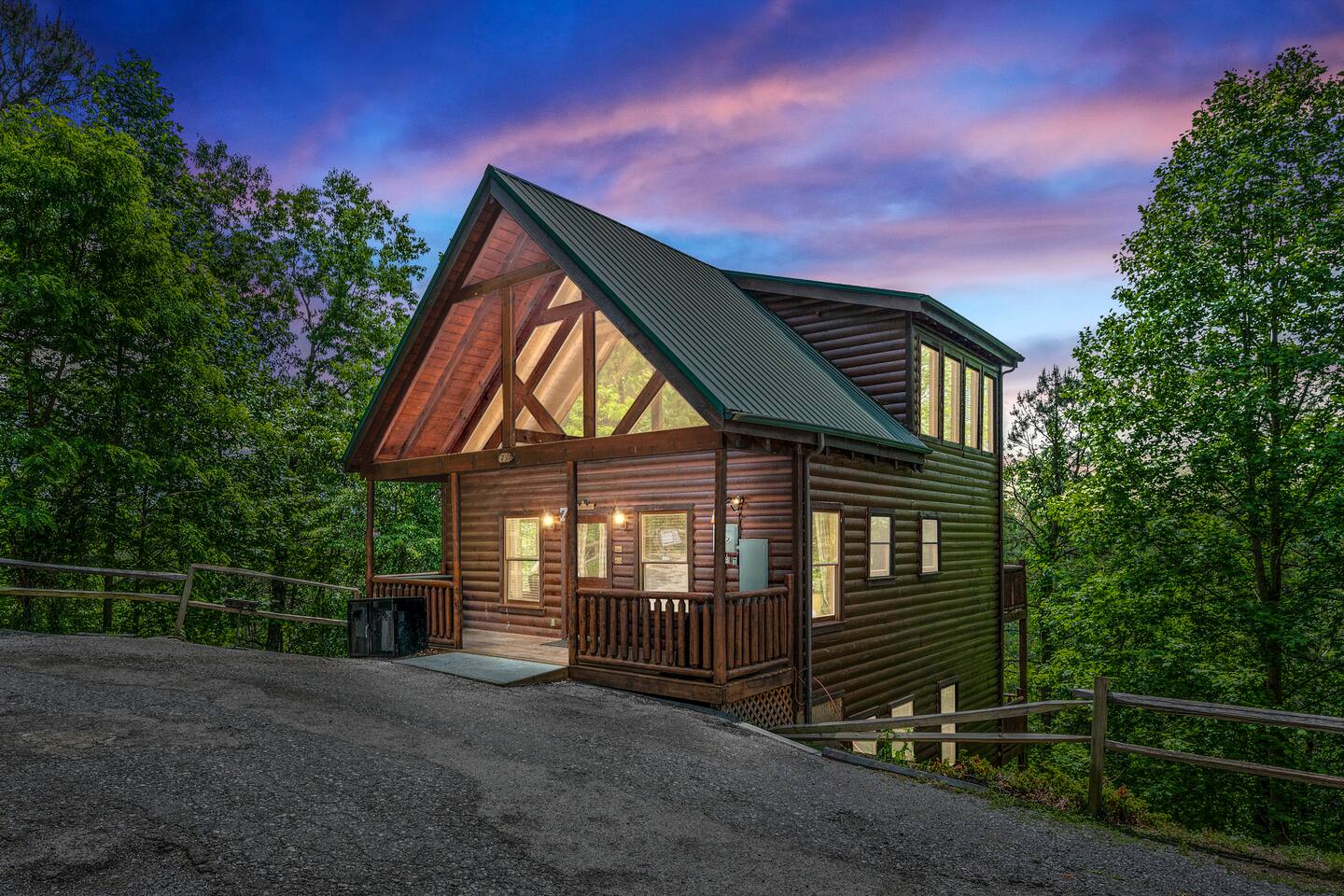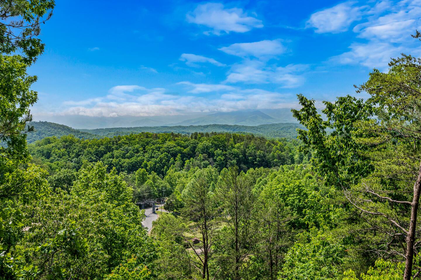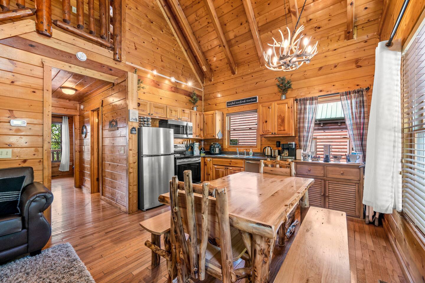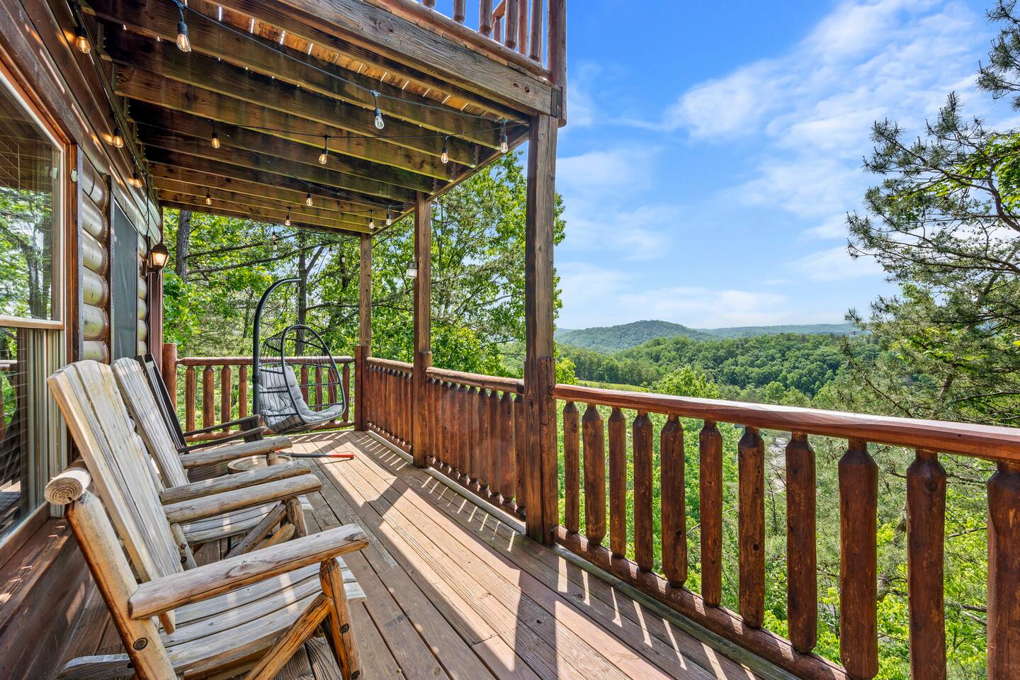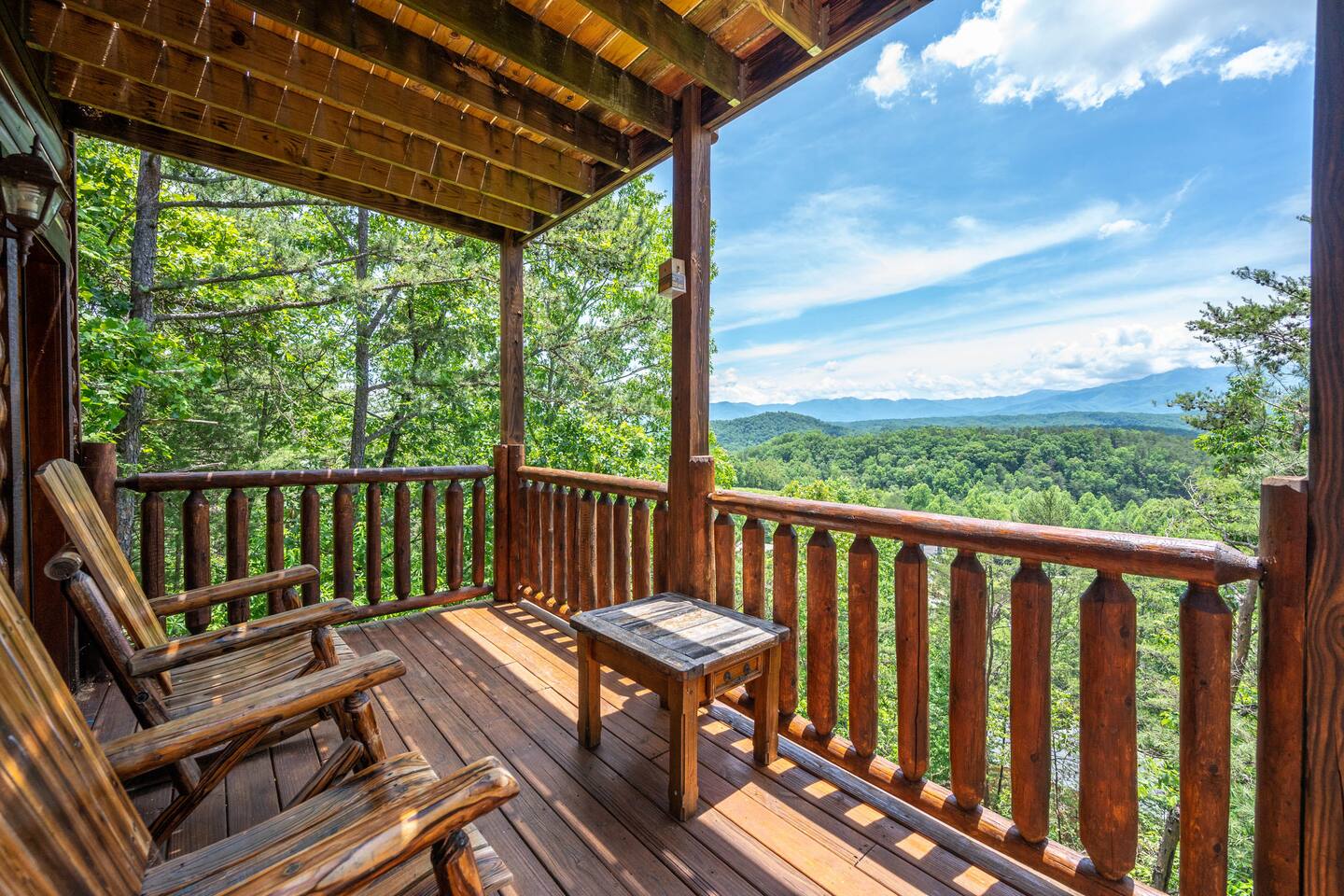 - 4-bedroom cabin with breathtaking views! - Sleeps 12 guests - Hot Tub - 10 minutes from all the action on the Parkway - Air Hockey table, Arcade Game, Smart TV's - High Speed WiFi - 3 Decks with amazing views - 3 King Beds, 1 Queen Bed, and 3 Sleeper Sofas - Fully equipped kitchen Prime location, yet nestled in the heart of nature, this cabin is the perfect retreat for families and groups looking for a peaceful and relaxing getaway. You and your family or group of 12 guests are going to love this cabin as it can accommodate a nice social gathering yet ensure the privacy you need while on vacation. Book now to experience the Smoky Mountains and all it has to offer with these incredible views. Conveniently located near Dollywood, Pigeon Forge and Gatlinburg, this 3 story home offers an Air Hockey Table, Arcade Game, 7 Smart TV's, and 3 decks to enjoy your Smokey Mountain Getaway from. The views are incredible from all three decks, which you can enjoy while relaxing in the 6 person hot tub, or from the Adirondack chairs with a nice beverage. The brand new hot tub is located out on the deck with a great view. It is drained, cleaned, and refilled before every stay. Inside, the cabin is fully furnished and equipped with all the amenities you need for a comfortable stay. The four bedrooms are cozy and inviting, with comfortable beds. The master bedroom even has its own private balcony, This home boasts a large master bedroom which encompasses the entire third floor, with more views, a king sized bed, jacuzzi tub, and a private balcony, perfect for enjoying a nightcap under the stars. The mainfloor features an open family room with a brand new large flatscreen Smart TV and sleeper sofa, fireplace, air hockey table, one queen bedroom and access to the balcony. On the lower level, you will find 2 king bedrooms, a tv/game room, and our deck with a hot tub. We have high Speed Xfinity Business Wifi, and Smart TV's located in every room for your enjoyment. Sleeping arrangements throughout the home includes 3 king beds (1 on the top floor, and 2 on the lower level), 1 queen bed (on the main floor), and 2 sofa beds (one on the main floor and one on the lower level) with linens and towels included. We also love kids, so we have stocked the home with a pack and play for your little one to sleep in, and a highchair so they can join you at the dinner table. The kitchen is fully equipped with modern appliances and everything you need to whip up a delicious meal for your family or friends. We also stock the home with soap and shampoo in every bathroom for your convenience. We have 2 charcoal grills available for use. With its stunning views, modern amenities, and unbeatable location, this 4-bedroom cabin is the perfect place to unwind and reconnect with nature. Book your stay today and start planning your dream vacation!
