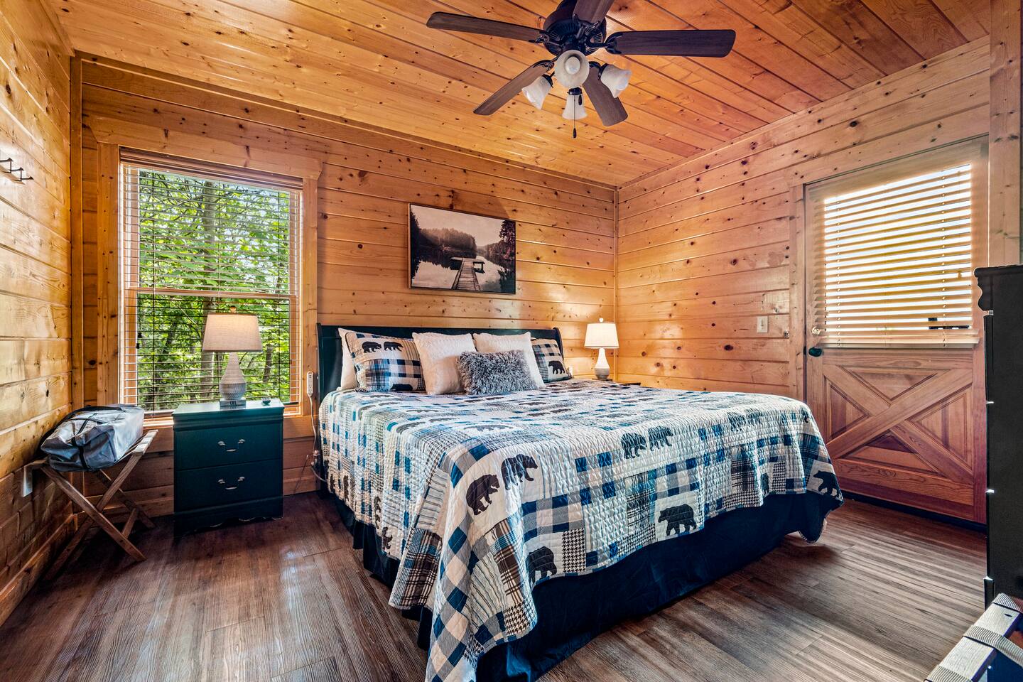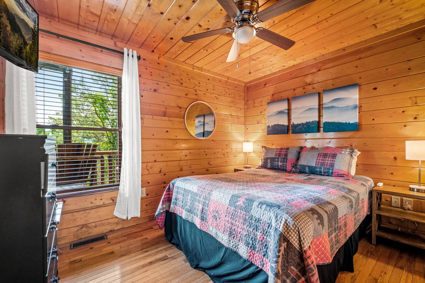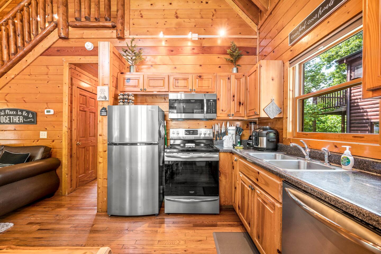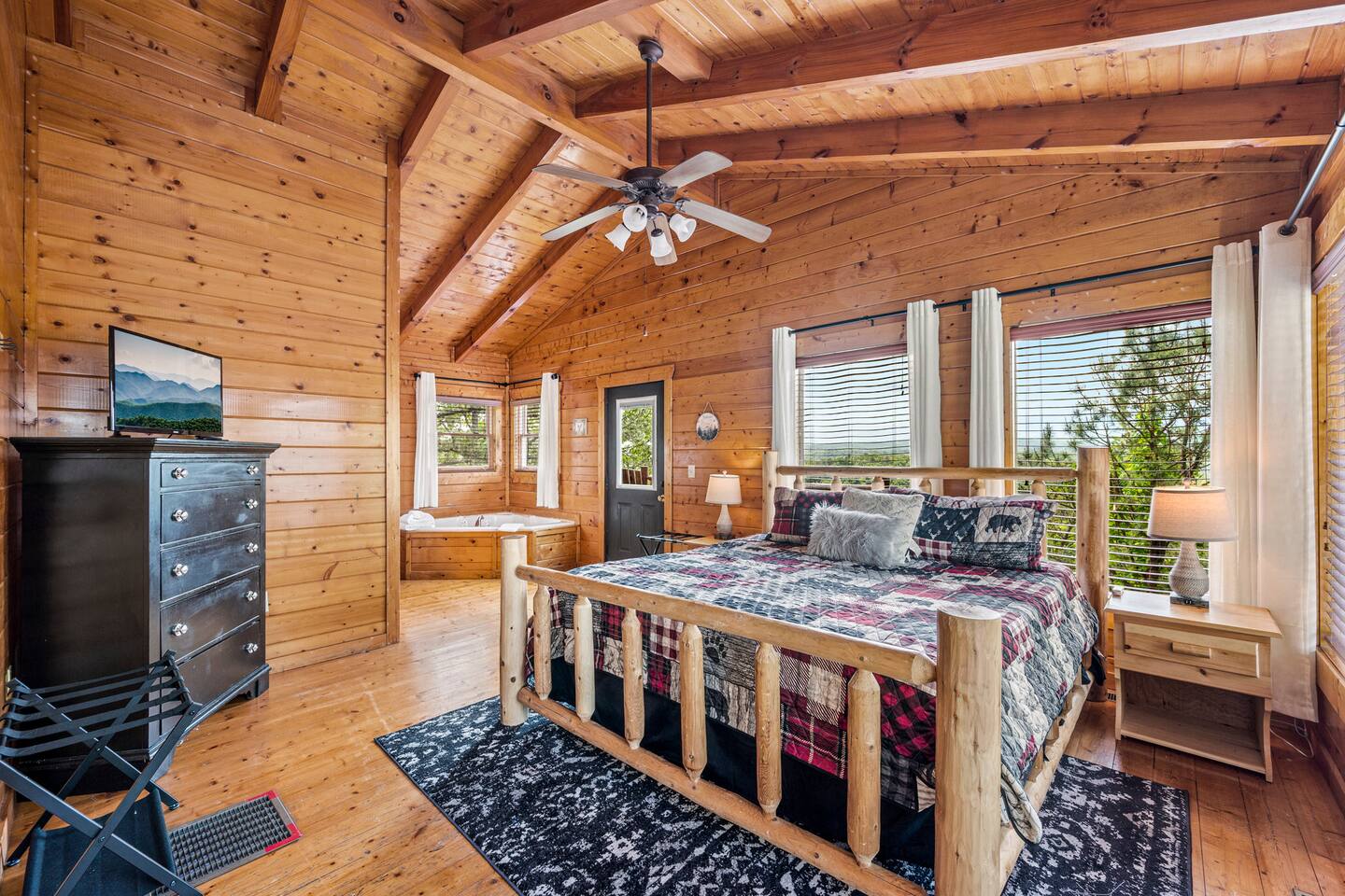 - 4-bedroom cabin with breathtaking views! - Sleeps 12 guests - Hot Tub - 10 minutes from all the action on the Parkway - Air Hockey table, Arcade Game, Smart TV's - High Speed WiFi - 3 Decks with amazing views - 3 King Beds, 1 Queen Bed, and 3 Sleeper Sofas - Fully equipped kitchen Prime location, yet nestled in the heart of nature, this cabin is the perfect retreat for families and groups looking for a peaceful and relaxing getaway. You and your family or group of 12 guests are going to love this cabin as it can accommodate a nice social gathering yet ensure the privacy you need while on vacation. Book now to experience the Smoky Mountains and all it has to offer with these incredible views. Conveniently located near Dollywood, Pigeon Forge and Gatlinburg, this 3 story home offers an Air Hockey Table, Arcade Game, 7 Smart TV's, and 3 decks to enjoy your Smokey Mountain Getaway from. The views are incredible from all three decks, which you can enjoy while relaxing in the 6 person hot tub, or from the Adirondack chairs with a nice beverage. The brand new hot tub is located out on the deck with a great view. It is drained, cleaned, and refilled before every stay. Inside, the cabin is fully furnished and equipped with all the amenities you need for a comfortable stay. The four bedrooms are cozy and inviting, with comfortable beds. The master bedroom even has its own private balcony, This home boasts a large master bedroom which encompasses the entire third floor, with more views, a king sized bed, jacuzzi tub, and a private balcony, perfect for enjoying a nightcap under the stars. The mainfloor features an open family room with a brand new large flatscreen Smart TV and sleeper sofa, fireplace, air hockey table, one queen bedroom and access to the balcony. On the lower level, you will find 2 king bedrooms, a tv/game room, and our deck with a hot tub. We have high Speed Xfinity Business Wifi, and Smart TV's located in every room for your enjoyment. Sleeping arrangements throughout the home includes 3 king beds (1 on the top floor, and 2 on the lower level), 1 queen bed (on the main floor), and 2 sofa beds (one on the main floor and one on the lower level) with linens and towels included. We also love kids, so we have stocked the home with a pack and play for your little one to sleep in, and a highchair so they can join you at the dinner table. The kitchen is fully equipped with modern appliances and everything you need to whip up a delicious meal for your family or friends. We also stock the home with soap and shampoo in every bathroom for your convenience. We have 2 charcoal grills available for use. With its stunning views, modern amenities, and unbeatable location, this 4-bedroom cabin is the perfect place to unwind and reconnect with nature. Book your stay today and start planning your dream vacation!